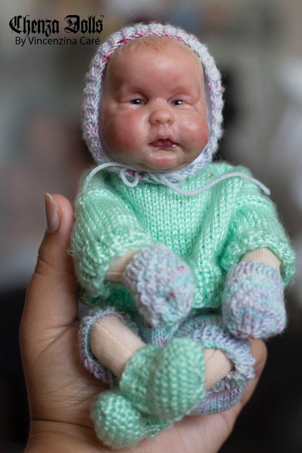 This Pascal OOAK 7 inch doll is a unique beauty! With its one of a kind sculpted face, green eyes, and blonde painted hair, it's sure to make you squeal! But don't be fooled by its rosy chubby cheeks - it's dressed to impress with a hand knit outfit and a hand sewn soft body made of merino wool. Plus, it's a rarity you won't regret adding to your collection! he will come with a little bed and blankie and other little special gifts.